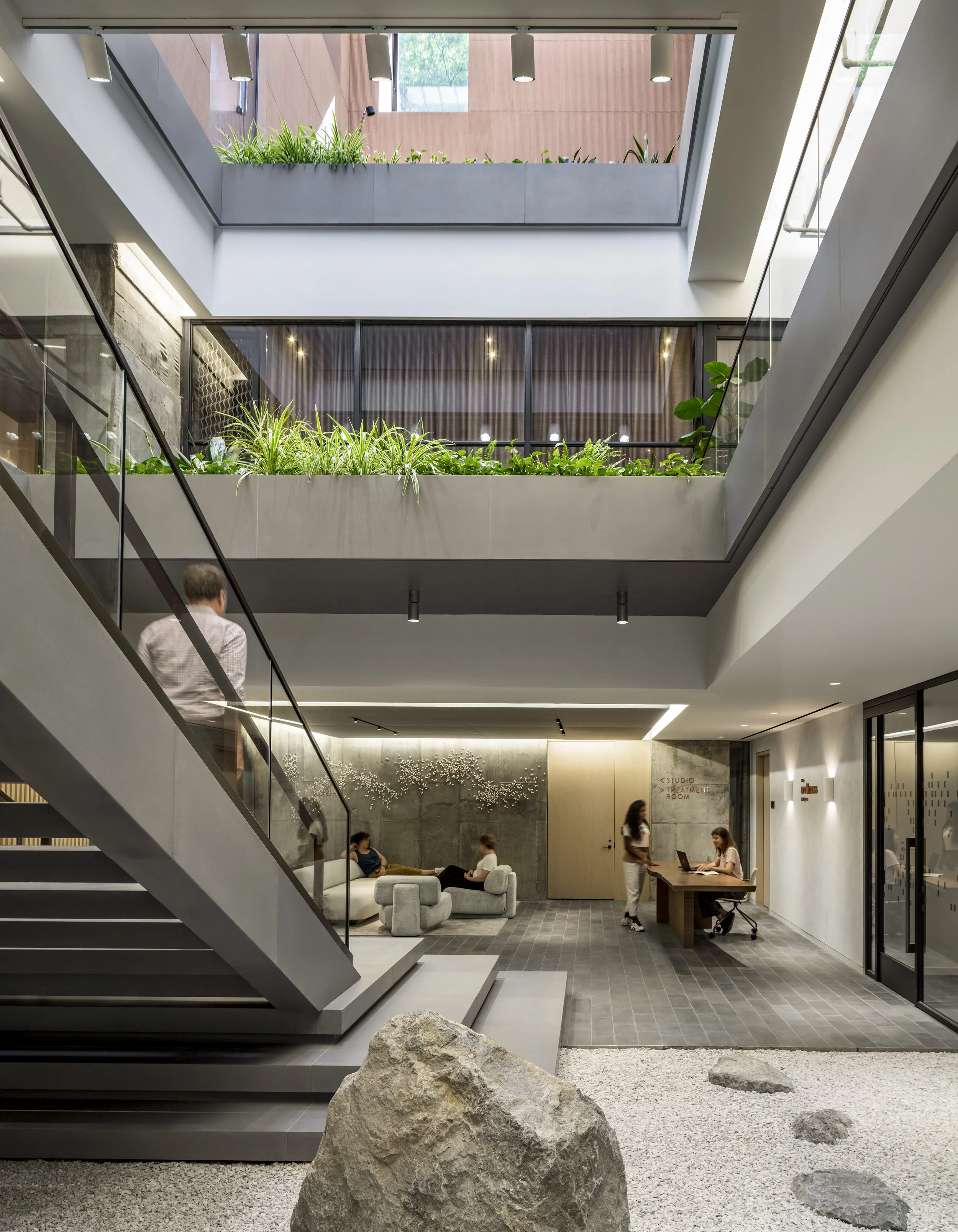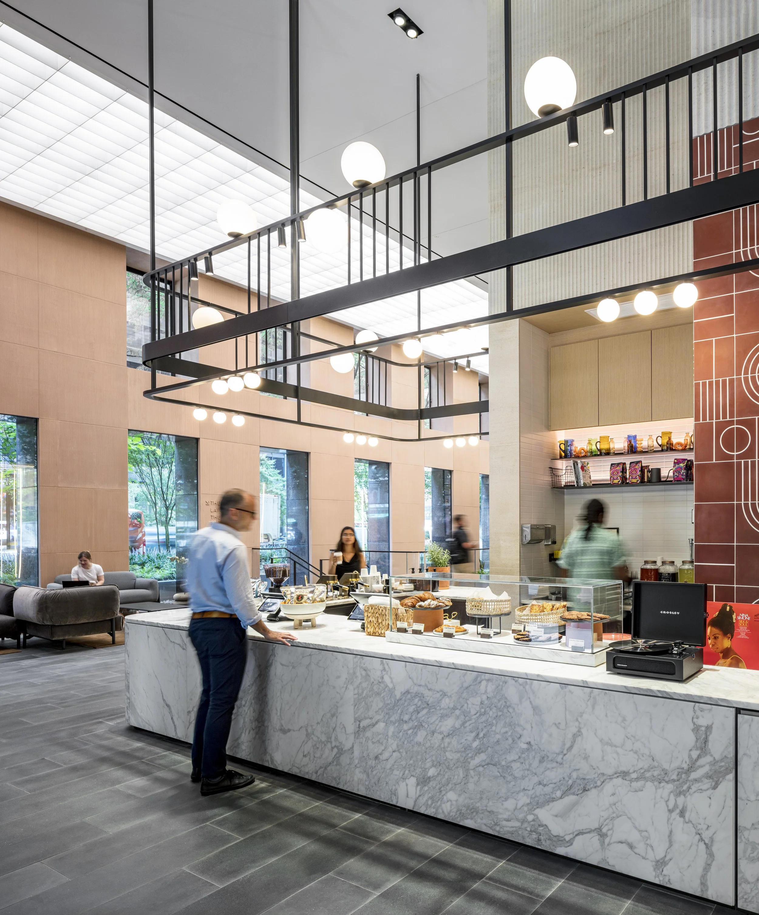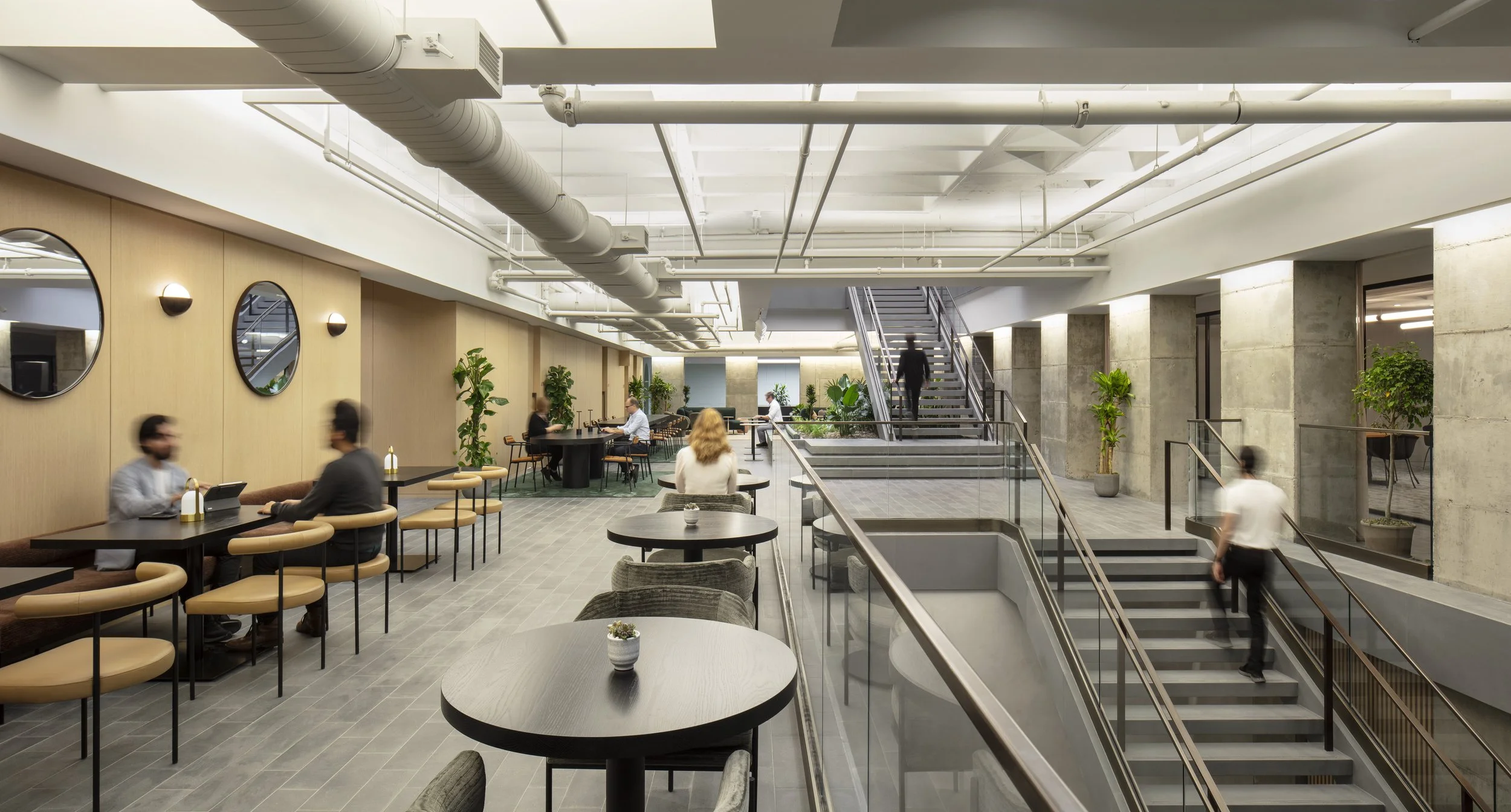 Lush plantings bring the outside in, and a walkable skylight brings natural sunlight deep into the building’s subterranean levels. New work-forward food and beverage offerings include a coffee bar in the lobby called Arable, and a full service restaurant called lafolia, elevating the amenities to deliver desirable spaces that attract.