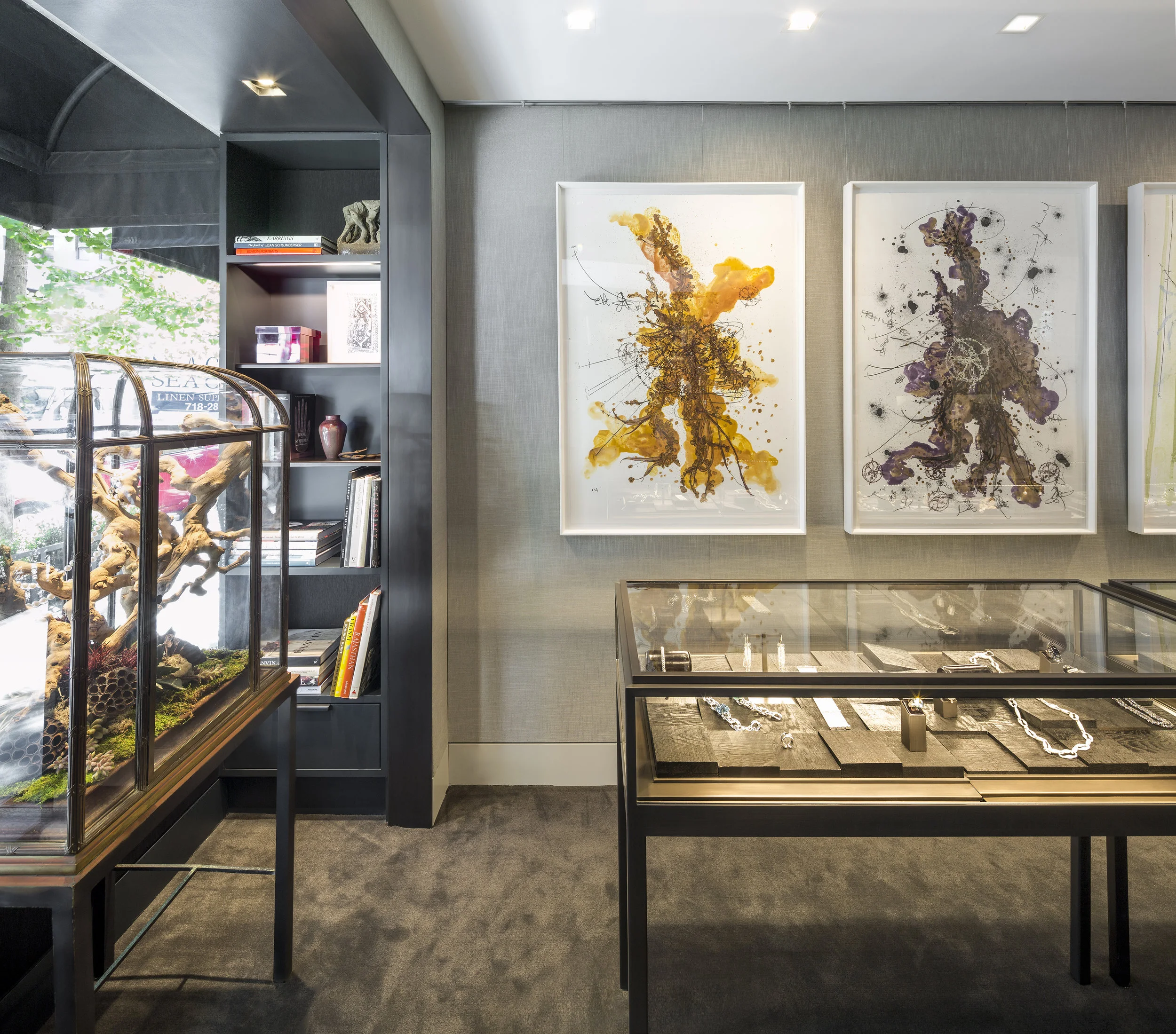 For this tiny Manhattan storefront, an emphasis on details and a refined material palette pairs well with the display of Sidney Garber’s fine jewelry. Comfortable seating options spread through the space break up the typical jewel box displays one expects. The result is a comfortable (and beautiful) oasis apart from the hustle and bustle of Madison Avenue.