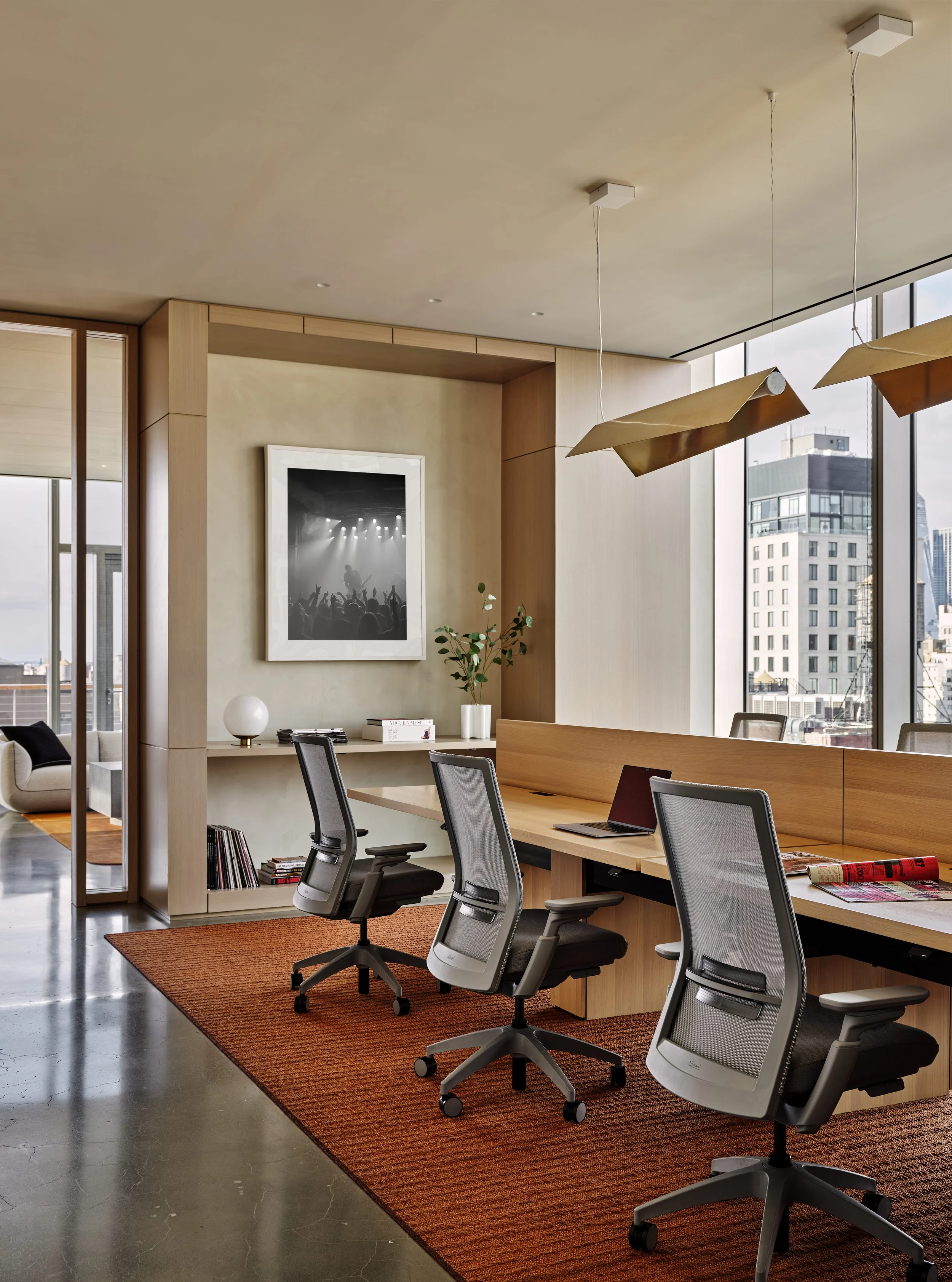 The overall design layers versatility into each space, accommodating anything from an album launch party to hosting an entourage of collaborators, cultural events and celebrations, or heads-down, individual work. The careful consideration of materiality, palette, and meticulous attention to the various moods and postures across all spaces have resulted in a collaboration-forward and artist-centric workplace.