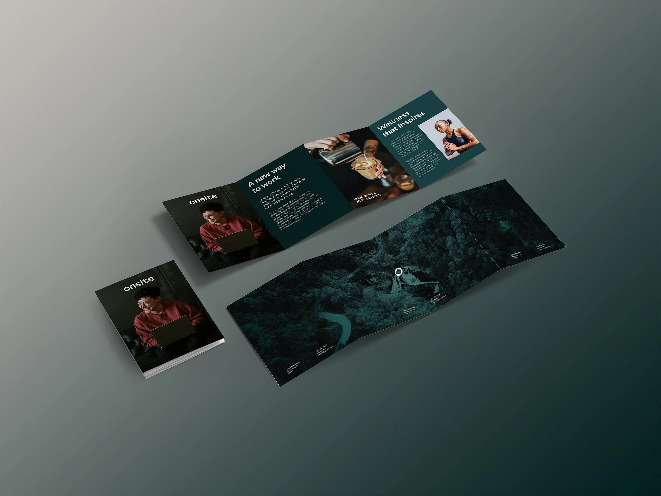 Building off of a comprehensive brand strategy and naming exercise, we developed the visual identity and concepts for the branded experience to include physical collateral and digital assets. To reinforce its value and to ensure that Onsite delivers a consistent experience across multiple properties, concepts and guidelines were developed for site-specific integration as well as wayfinding and signage.